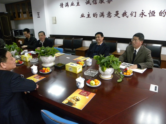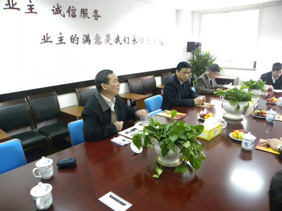 3月20日浙江省质量监督局一行领导莅临我司指导,公司董事长何晓勇先生向诸位领导介绍了公司的一些情况,与会双方对物业管理中的一些问题提出了自己见解和想法,诸位领导对我司的工作表示非常满意,会晤过程轻松和谐。