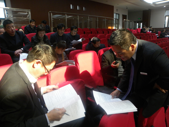 2012年11月24日,浙江永成物业迎来了一件大事,第三届职工代表大会胜利召开了。在这次会议上,与会代表认真听取了公司执行总经理、党支部书记、工会主席陈彭年同志《工作报告》和《员工手册》、规章制度内容的宣读,然后由各片区分组讨论公司《员工手册》、规章制度的各项实施意见与建议,经过热烈的分组讨论,最后汇总整理出40多条有效意见。
