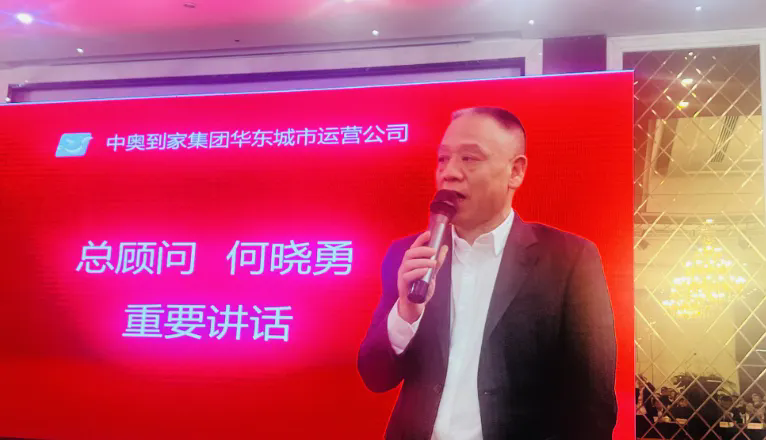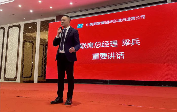 会议第五议程,中奥到家集团执行董事兼华东城市运营公司联席总经理梁兵作重要讲话。他对何总多年来对公司