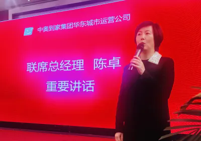 会议第六议程,中奥到家集团执行董事兼华东城市运营公司联席总经理陈卓作重要讲话。她表示将会辅助梁总